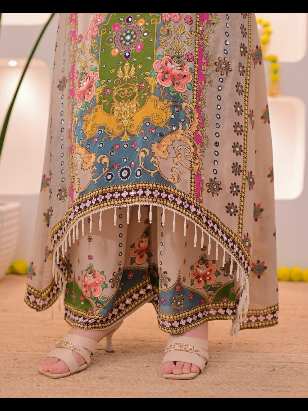 Hand Work: Premium Mirror Hand Work on Neckline & Borders, Accentuating the Look